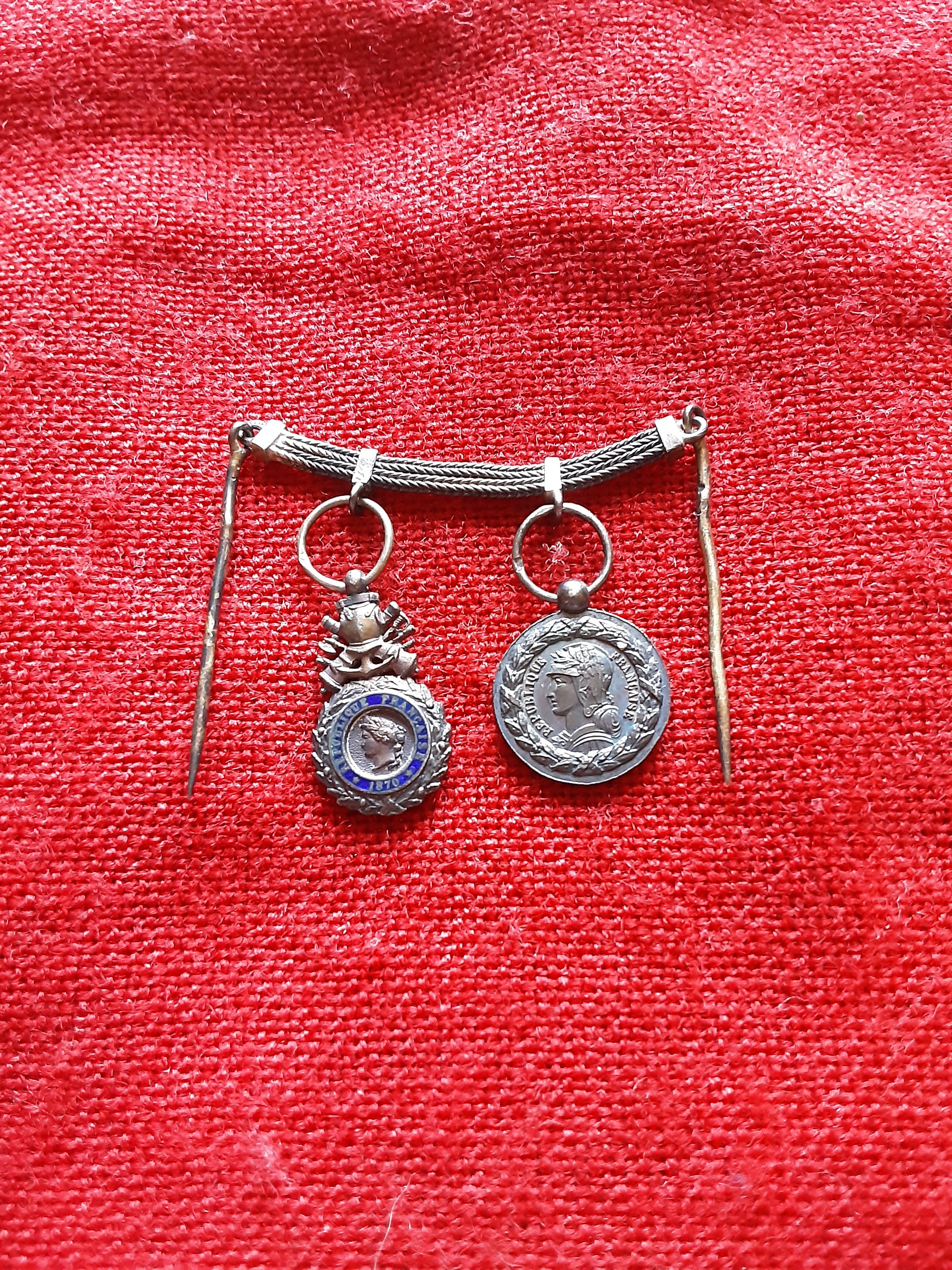 French 19th century. Period miniature gallantry pair. Military Medal & Tonkin Chine 1883-85.